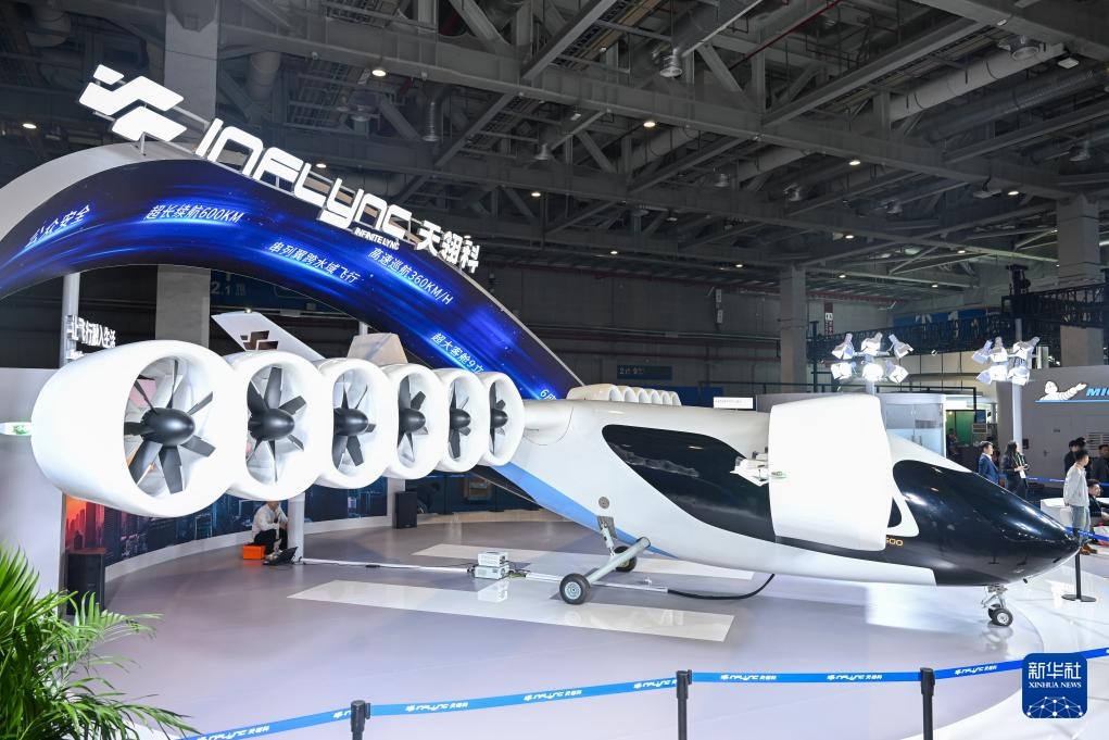 11月6日在進(jìn)博會(huì)汽車及智慧出行展區(qū)天翎科展臺(tái)拍攝的L600全尺寸傾轉(zhuǎn)涵道翼eVTOL。這是該產(chǎn)品全球首發(fā)。