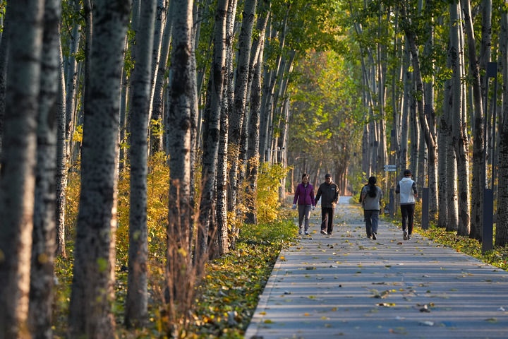 市民在北京市朝陽區(qū)的朝陽綠道上散步休閑(2025年11月14日攝)。新華社記者 鞠煥宗 攝