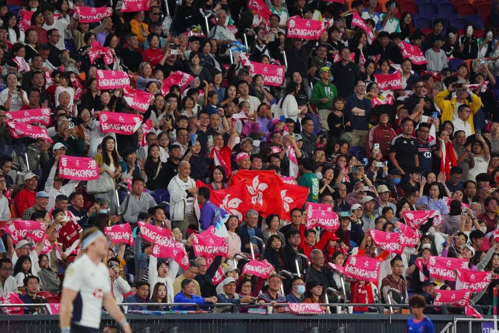 香港市民葉先生特意購票來到啟德觀看14日晚間的七人制橄欖球比賽,為闖入決賽的香港男隊加油。“這次的橄欖球比賽在香港舉辦,我當然要來看!”他的語氣中難掩激動,“在主場看到他們奪冠真的太開心了!”
