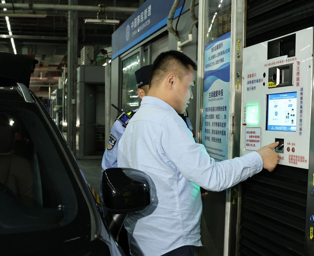 11月15日零時(shí),“粵車南下”首位通關(guān)車主周先生在“一站式”通道辦理通關(guān)手續(xù)。新華社記者 黃國(guó)保 攝