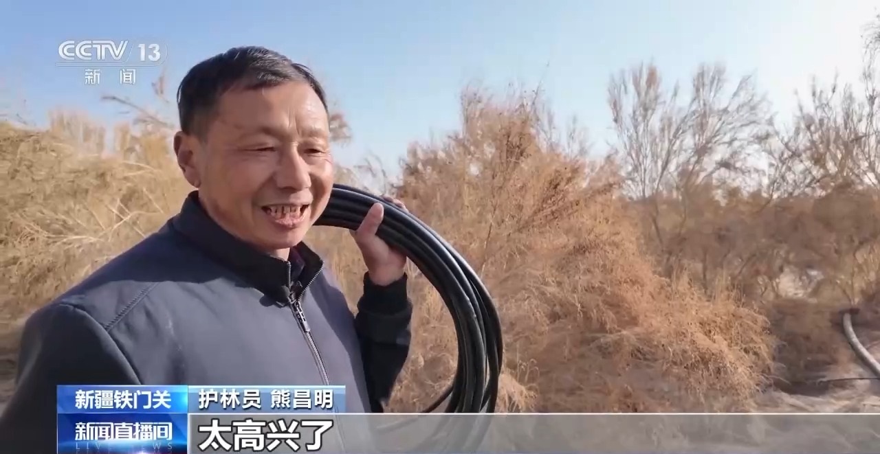 眼下這個(gè)季節(jié),正是冬季巡林最忙碌的時(shí)候,新疆鐵門(mén)關(guān)市營(yíng)盤(pán)鎮(zhèn)53歲的護(hù)林員熊昌明,每天早晨都會(huì)和同事在泵房會(huì)合,一起去檢修梭梭林里的滴灌帶。
