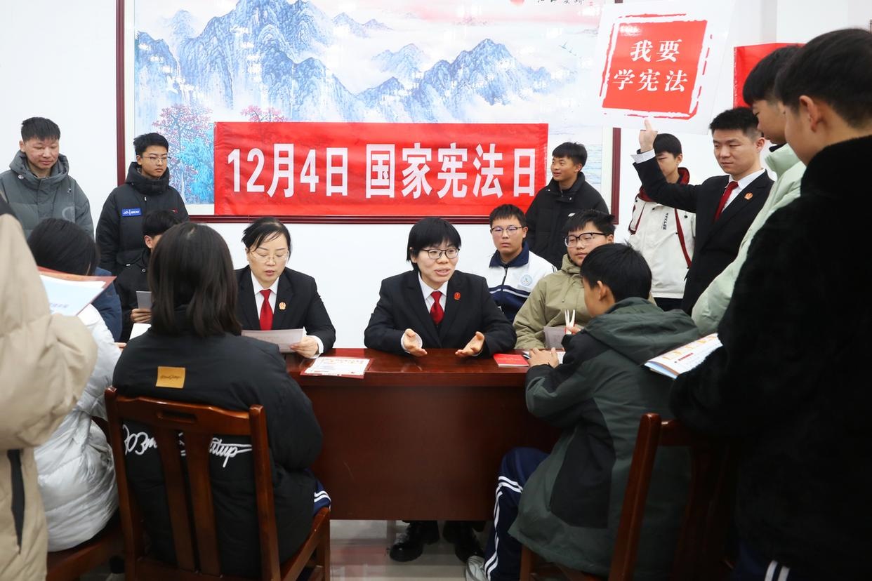 12月3日,山東省棗莊市市中區(qū)人民法院組織法官走進(jìn)校園,開展主題宣傳活動,向?qū)W生普及憲法知識、宣傳法治觀念、弘揚(yáng)憲法精神。(工人日報通訊員 孫中喆 攝)