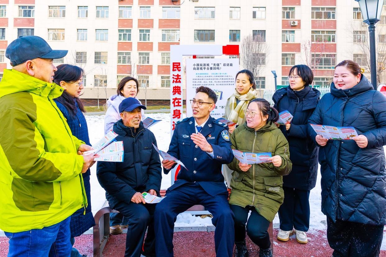 12月2日,新疆烏魯木齊市天山區(qū)幸福路街道天福花園社區(qū)組織黨員和志愿者上門為商戶和居民宣講憲法知識、發(fā)放憲法知識手冊、提供法律咨詢等多種形式,推動憲法宣傳教育深入人心。(工人日報通訊員 孫振嵩 攝)