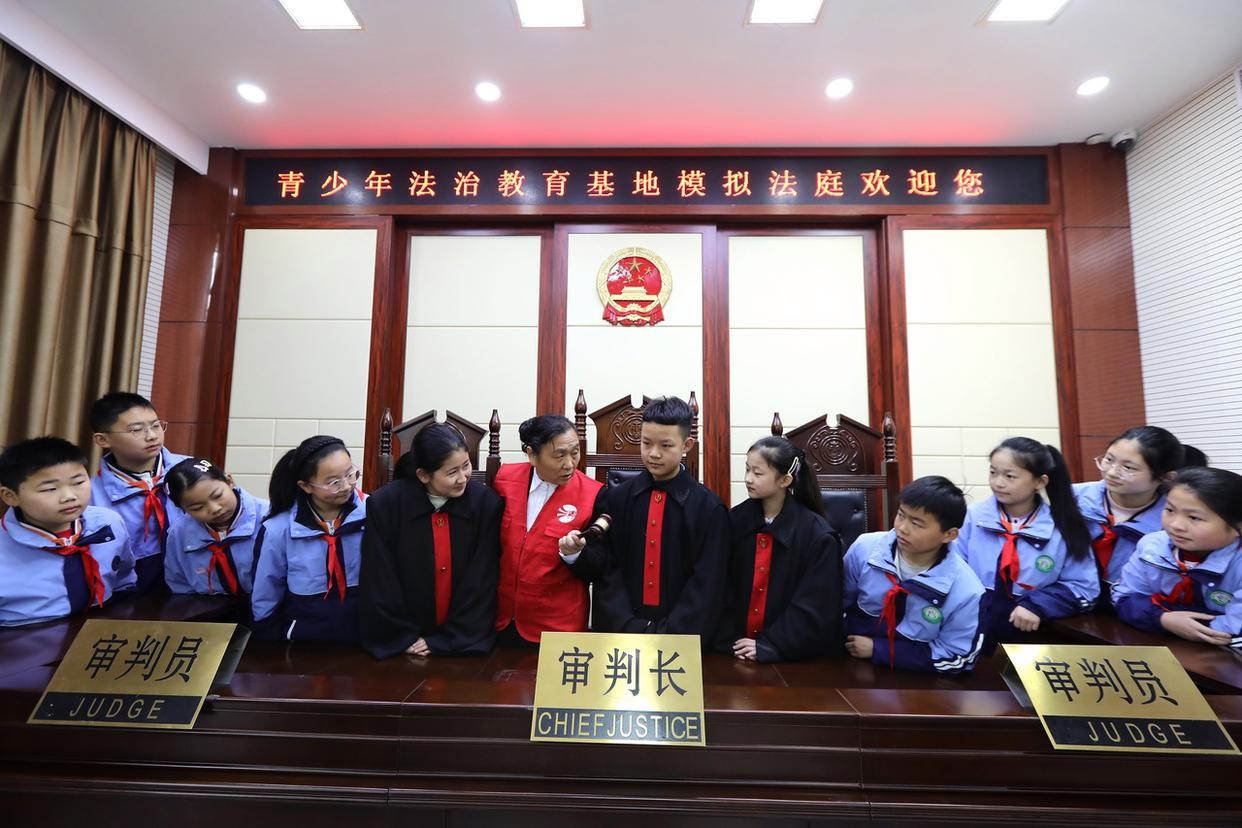 12月2日,孩子們在學(xué)習(xí)憲法知識、體驗(yàn)“模擬法庭”,“沉浸式”感知法律的神圣與威嚴(yán),在潛移默化中接受法治教育,爭做一個學(xué)法、懂法、守法的新時代好公民。(工人日報通訊員 李海濤 攝)