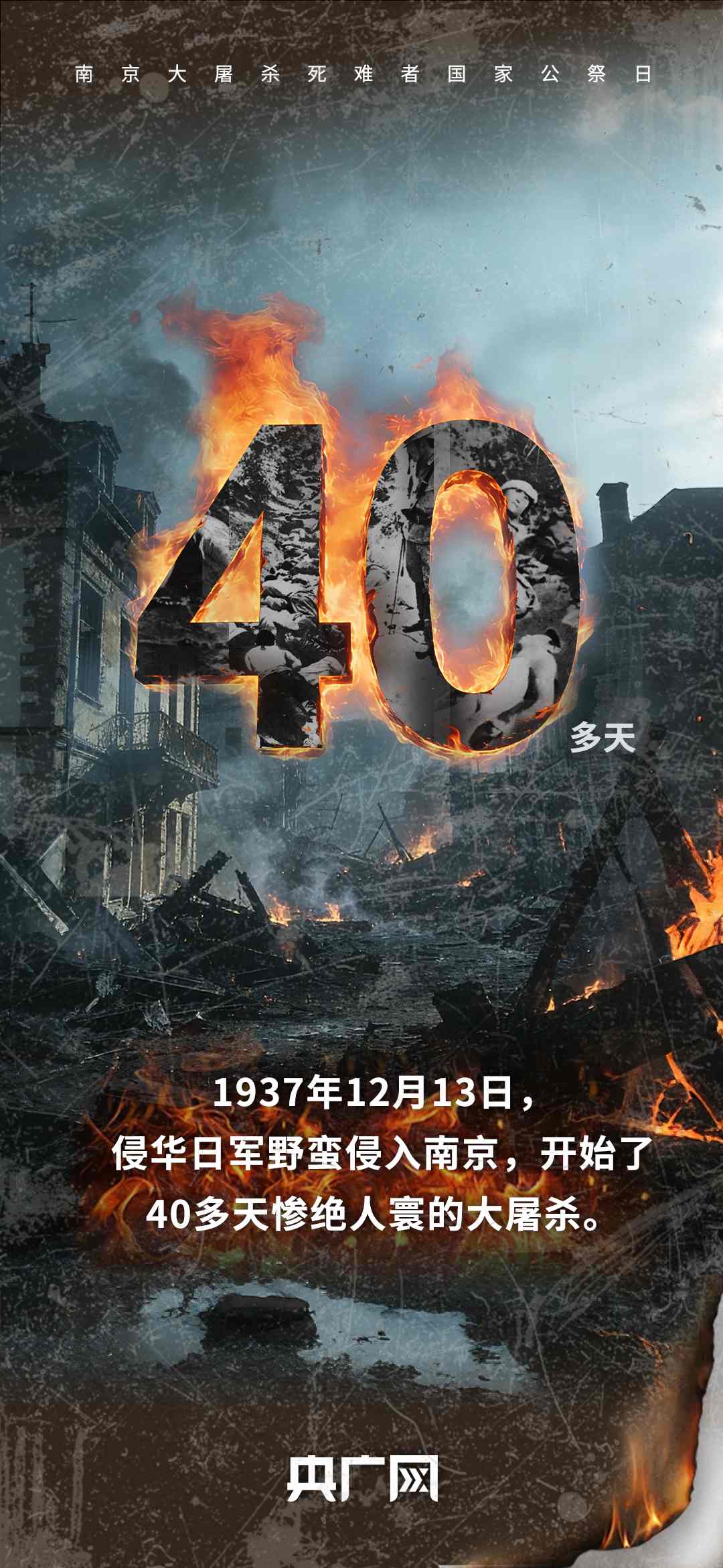 今天(12月13日)是第十二個南京大屠殺死難者國家公祭日。88年前,侵華日軍制造了慘絕人寰的南京大屠殺,這是一場持續(xù)40多天的人間浩劫,30多萬同胞罹難……每一個數(shù)字,都在提醒著我們,曾經(jīng)的血與淚,不能忘,不敢忘!銘記歷史,珍愛和平,吾輩自強!