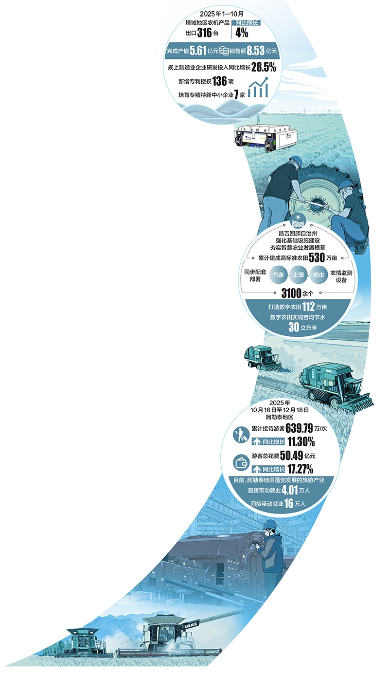歲末之際,北疆大地處處涌動著蓬勃生機與創(chuàng)新活力。從智能農(nóng)機產(chǎn)銷兩旺到數(shù)字農(nóng)田“云端”管理,從冰雪熱潮點燃消費新引擎到物流樞紐貫通能源動脈,一幅以“新”為底色的發(fā)展畫卷正徐徐展開。本期北疆觀察版年終盤點,聚焦四組生動實踐,看新技術、新產(chǎn)業(yè)、新模式如何匯聚成新質(zhì)生產(chǎn)力,為區(qū)域高質(zhì)量發(fā)展注入強勁動能。