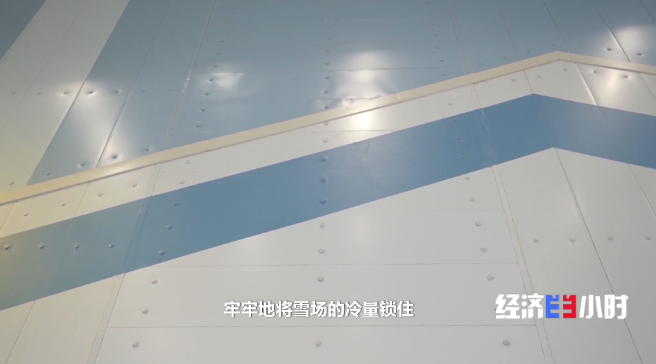 工作人員介紹,雪場四周和樓頂分布著1萬多塊冷庫板,牢牢將雪場冷量鎖住,隔絕內(nèi)外之間溫差。
