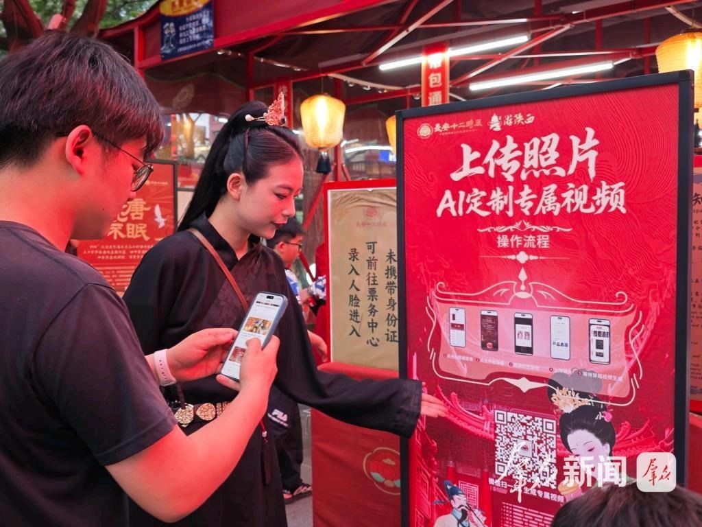 游客在長(zhǎng)安十二時(shí)辰主題街區(qū)體驗(yàn)AI產(chǎn)品。(資料圖)