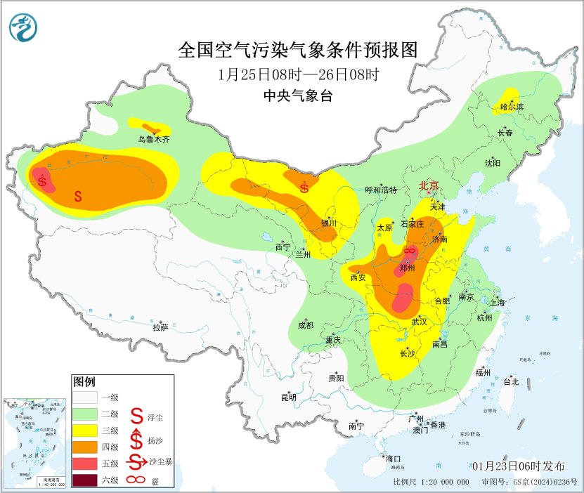 23日起,區(qū)域大部大氣擴(kuò)散條件逐步轉(zhuǎn)差,山西中南部、陜西關(guān)中等地的部分地區(qū)有輕至中度霾。