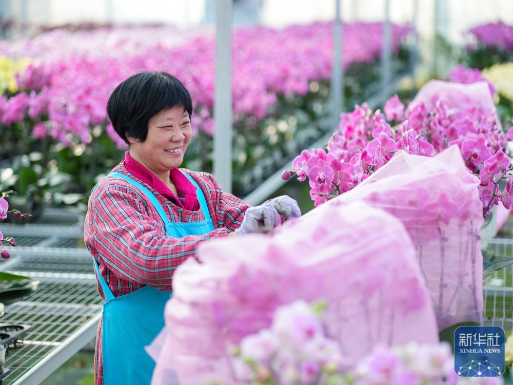 ↑1月23日,花卉工人在江蘇省泰州市姜堰區(qū)顧高鎮(zhèn)現(xiàn)代園藝產(chǎn)業(yè)園基地為花做造型,準(zhǔn)備供應(yīng)節(jié)日市場。新華社發(fā)(周社根攝)