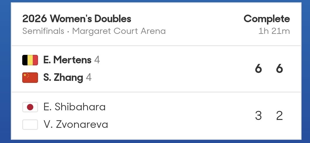 北京時間1月29日,2026澳網(wǎng)女雙展開半決賽較量,中國球員張帥搭檔比利時球員梅爾滕斯直落兩盤擊敗柴源瑛菜/茲沃娜列娃。老將張帥時隔七年再進澳網(wǎng)決賽。