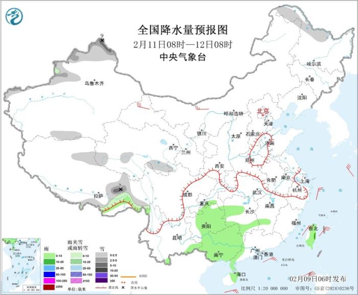 圖2 全國降水量預(yù)報圖(2月9日08時-10日08時)圖片來源:中央氣象臺網(wǎng)站