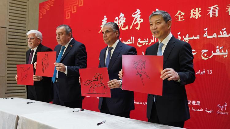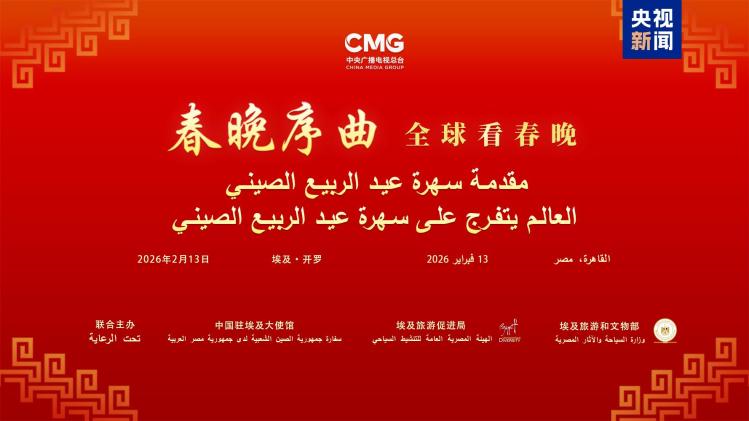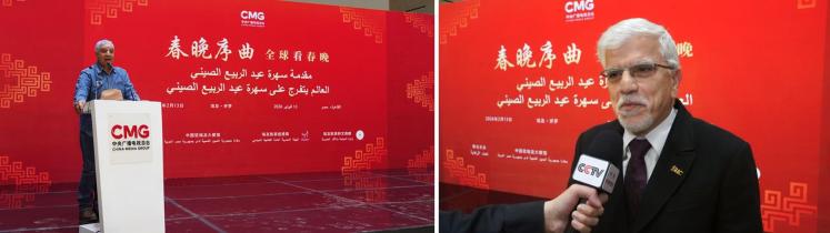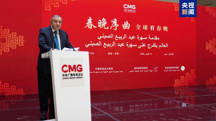 當地時間2月13日,“春晚序曲 全球看春晚”埃及專場活動在開羅舉行。本次活動由中國中央廣播電視總臺與中國駐埃及大使館、埃及旅游和文物部、埃及旅游促進局共同主辦。中宣部副部長、中央廣播電視總臺臺長慎海雄作視頻致辭。中國駐埃及大使兼駐阿盟全權代表廖力強,埃及政府代表、埃及外交部亞洲事務部助哈姆扎,埃及前總理沙拉夫出席活動并致辭。埃及考古學家、前文物部長哈瓦斯,埃及旅游促進局主席代拉提芙,埃及外交事務委員會執(zhí)行主任伊扎特,巴德爾大學副校長巴斯歐尼,阿盟非洲事務司司長布斯坦吉,阿盟理事會秘書處主任法赫米等中埃兩國政界、學術界、媒體界代表200余名嘉賓參加活動。