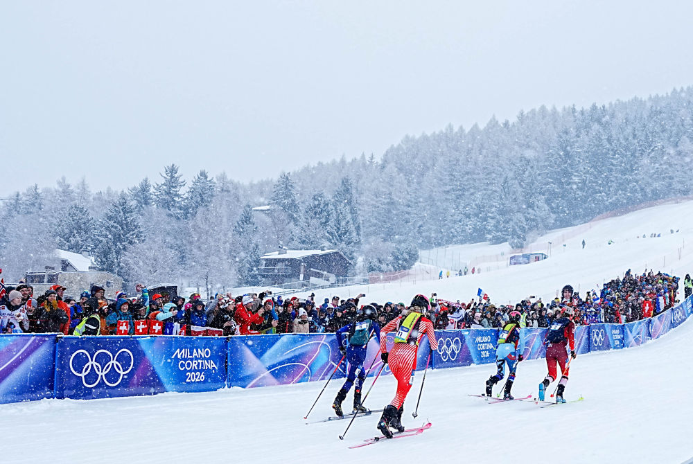 2026年2月19日,運(yùn)動(dòng)員在米蘭-科爾蒂納冬奧會(huì)滑雪登山比賽中。新華社記者 顏麟蘊(yùn) 攝