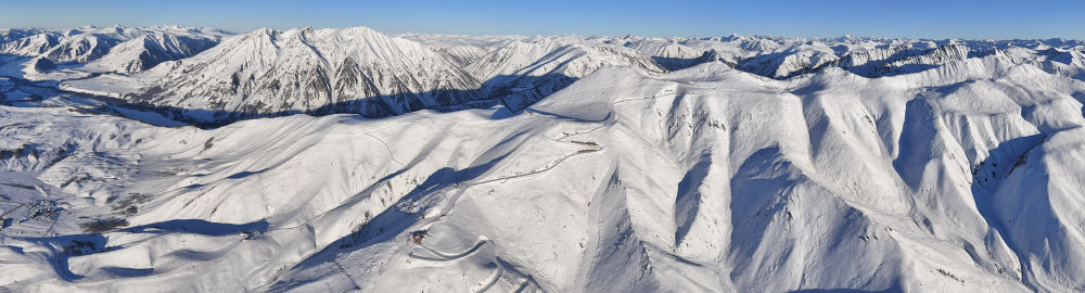 新疆阿勒泰禾木吉克普林國(guó)際滑雪度假區(qū)(2024年12月6日攝,無(wú)人機(jī)全景照片)。新華社記者 胡虎虎 攝