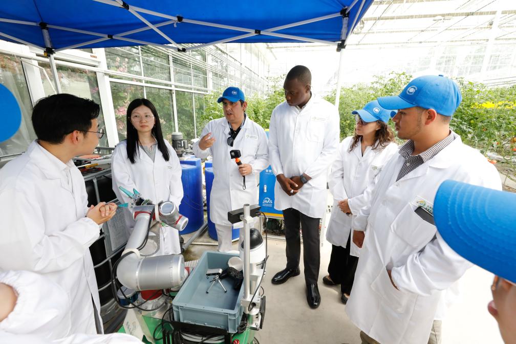 2024年5月22日,“中國—FAO(聯(lián)合國糧農(nóng)組織)南南合作拉丁美洲和加勒比地區(qū)農(nóng)村生計改善和糧食體系轉(zhuǎn)型能力建設活動”學員赴江蘇省農(nóng)業(yè)科學院開展交流。新華社發(fā)(江蘇省農(nóng)業(yè)科學院供圖)