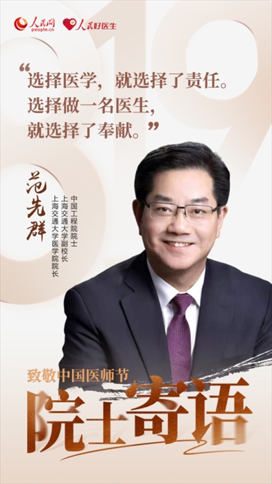 2023年8月19日是第六個中國醫(yī)師節(jié),今年醫(yī)師節(jié)的主題是“勇?lián)】凳姑?,鑄就時代新功”,大力弘揚(yáng)醫(yī)務(wù)工作者的崇高精神。值此之際,人民網(wǎng)、人民好醫(yī)生客戶端邀請中國工程院和中國科學(xué)院7位院士,為廣大醫(yī)務(wù)工作者們送上殷切的節(jié)日囑托。