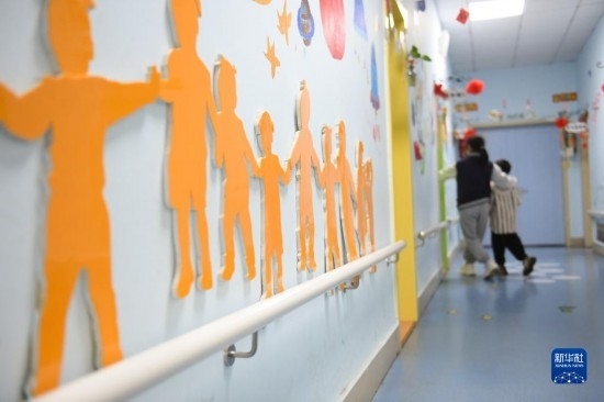 這是自閉癥青少年和老師一起裝扮的教室門(3月29日攝)。