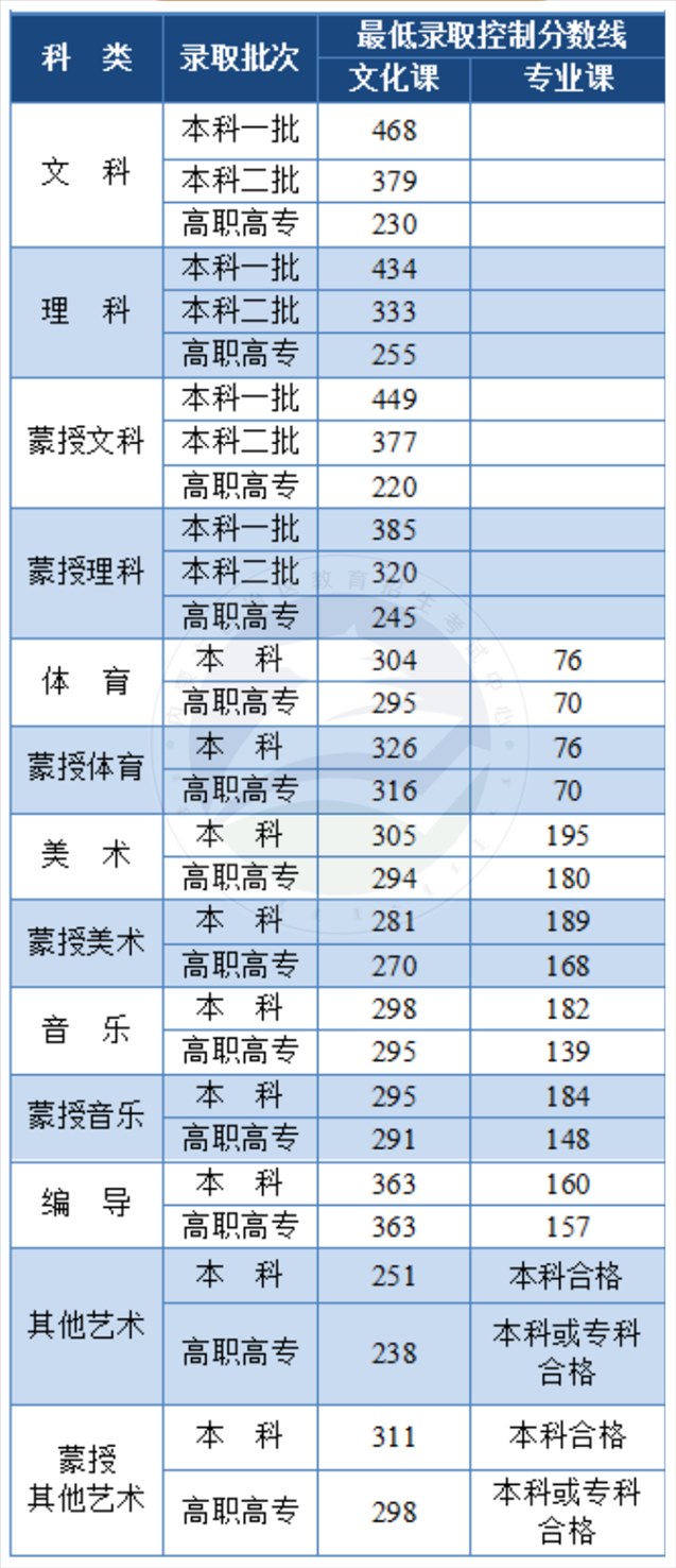 內(nèi)蒙古普通高考最低錄取控制分?jǐn)?shù)線
