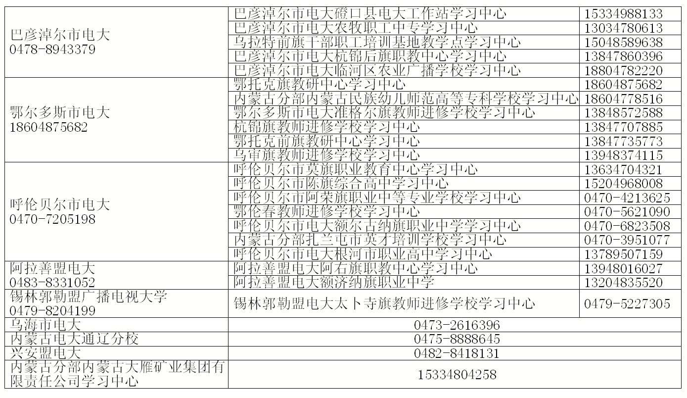 一、內(nèi)蒙古開(kāi)放大學(xué)(內(nèi)蒙古分部)是國(guó)家開(kāi)放大學(xué)系統(tǒng)在內(nèi)蒙古辦學(xué)的主體,開(kāi)展學(xué)歷繼續(xù)教育和非學(xué)歷繼續(xù)教育的辦學(xué)組織機(jī)構(gòu),是國(guó)家開(kāi)放大學(xué)辦學(xué)組織體系的重要組成部分。內(nèi)蒙古開(kāi)放大學(xué)嚴(yán)格按照國(guó)家開(kāi)放大學(xué)批復(fù)的學(xué)習(xí)中心開(kāi)展辦學(xué)行為,要求辦學(xué)體系內(nèi)各地方學(xué)習(xí)中心要按照統(tǒng)一標(biāo)準(zhǔn)和要求開(kāi)展招生宣傳、組織報(bào)名、入學(xué)資格審核等環(huán)節(jié)工作,內(nèi)蒙古開(kāi)放大學(xué)的每季度招生簡(jiǎn)章及開(kāi)展招生工作的學(xué)習(xí)中心均公示在學(xué)校官網(wǎng)(https://www.imou.edu.cn/)。