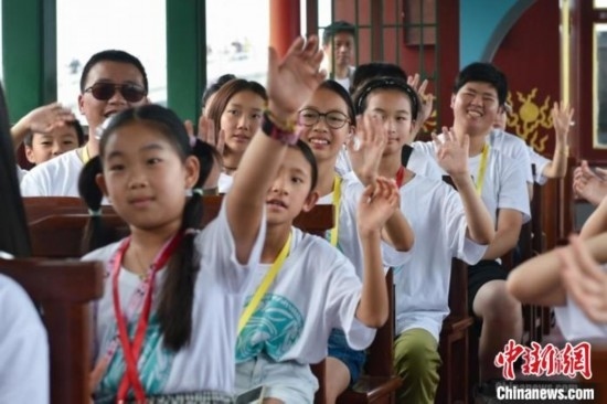 8月9日,2023海外華裔青少年夏季研學營進入第三天,海內(nèi)外營員走進頤和園,乘坐畫舫游昆明湖。