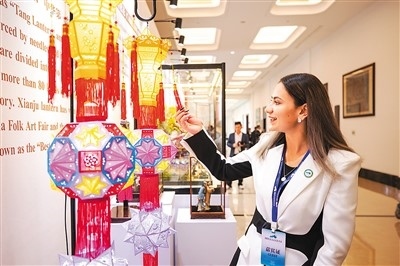 外國友人在參觀和合文化展陳。 潘侃俊攝