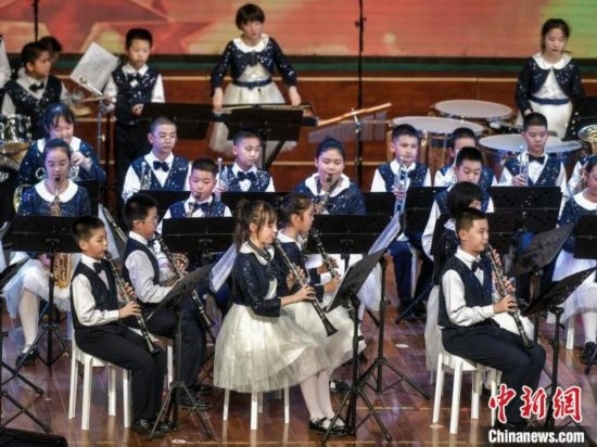 12月27日,新疆烏魯木齊市沙依巴克區(qū)教育系統(tǒng)“龍行龘龘 樂動童年”2024年交響管樂新年音樂會在該市青少年宮舉辦,來自烏魯木齊市第27小學(xué)的交響管樂團演奏了《紅旗頌》、《茉莉花》等經(jīng)典曲目,并與絲路名師合唱團合作演出《青春之舞》、《最炫民族風》等曲目。據(jù)介紹,該交響管樂團成立于2014年,規(guī)模從最初的40余人發(fā)展到現(xiàn)今近70人,團員平均年齡10歲。