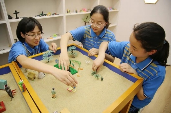 2023年5月30日,在湖北省十堰市鄖陽(yáng)區(qū)一中,高三學(xué)生在學(xué)校的沙盤室內(nèi)通過擺放物件釋放壓力。通訊員 曹忠宏 宋紅梅 攝