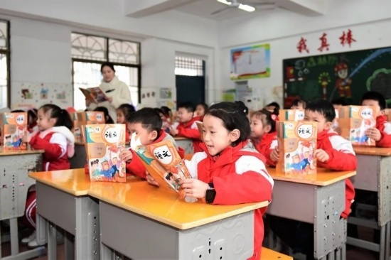 2023年2月7日,湖南省郴州市第十二完全小學(xué),老師領(lǐng)讀新學(xué)期第一課。通訊員 曹高林 攝