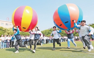 安徽省淮北市第十二中學(xué),高三學(xué)生在參加趣味比賽。萬善朝攝(影像中國)
