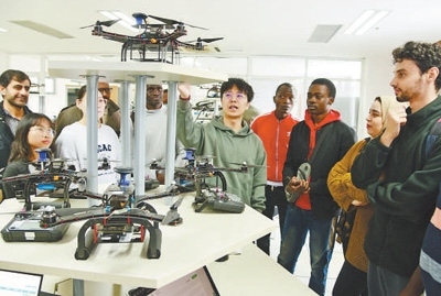 江蘇大學(xué)第四屆計算機文化節(jié)上,外國留學(xué)生在了解無人機功能和運行原理。石玉成攝(影像中國)