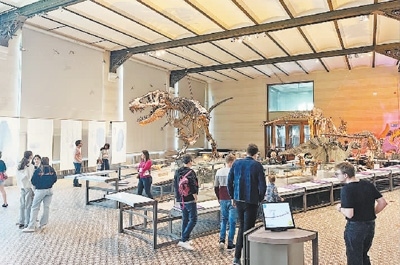 比利時皇家自然科學(xué)博物館恐龍化石展區(qū)吸引許多觀眾參觀。本報記者 牛瑞飛攝
