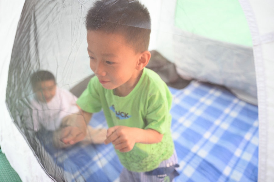 與小帳篷合影的小朋友