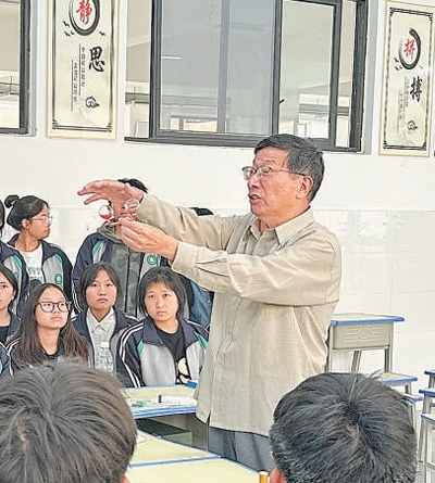 忻元華和支教的緣分,還得從2015年說起。從寧波一所高校副校長崗位上退休后,他發(fā)揮自動(dòng)化專業(yè)優(yōu)勢(shì),在中小學(xué)校、社區(qū)里做科普講座。2015年,抱著試一試的想法,忻元華參加了支教志愿者團(tuán)隊(duì)。此后的9年里,從湖南溆浦到甘肅隴西,再到四川涼山,忻元華帶著自制的科學(xué)教具,跋山涉水,把科學(xué)知識(shí)帶進(jìn)大山,點(diǎn)燃孩子們對(duì)科學(xué)的熱愛。