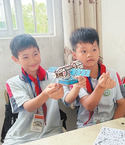 “這是航天衛(wèi)星的兩翼,是安裝太陽能電池板的地方?!眮碜詮V西壯族自治區(qū)梧州市藤縣第五小學(xué)的三年級(jí)學(xué)生李杰峰驕傲地展示著親手組裝的模型,他希望將來能從事航天工作。