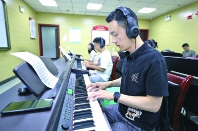 貴州省貴陽市觀山湖區(qū)青年夜校的電子琴課堂。新華社發(fā)