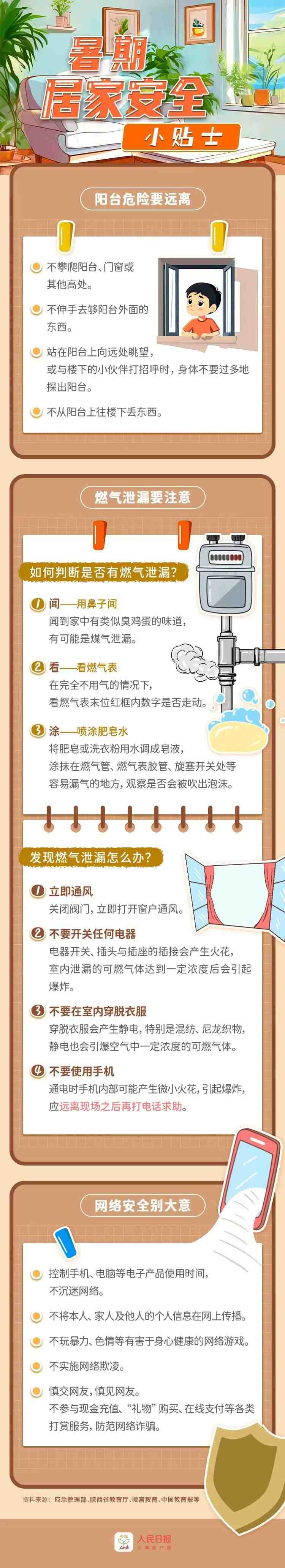 家是溫馨地,安全要牢記。暑假接近尾聲,防險(xiǎn)切莫大意。速速領(lǐng)取這份居家安全小貼士,和所有的隱患說拜拜,做全家安全的“守護(hù)者”!