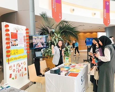 | 今年2月,張翠翠(左)參加索邦大學阿布扎比校區(qū)的開放日活動。(本文配圖由中國國際中文教育基金會提供) |