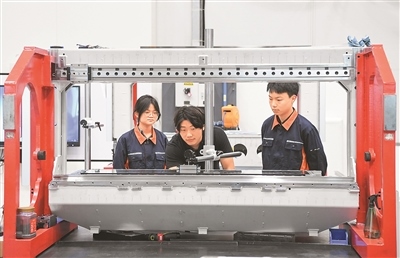在西安航空職業(yè)技術(shù)學(xué)院,“飛機(jī)鈑金成形技術(shù)”課程以機(jī)翼帶筋壁板、機(jī)身蒙皮等典型的飛機(jī)鈑金零件為載體,圍繞成形原理、工藝過程、質(zhì)量檢驗(yàn)等典型生產(chǎn)環(huán)節(jié),設(shè)計(jì)8大模塊32個(gè)學(xué)習(xí)任務(wù),并將機(jī)翼整體壁板噴丸成形、大型蒙皮拉伸成形等8項(xiàng)國產(chǎn)大飛機(jī)新技術(shù)、新工藝引入課程……