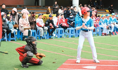 兩岸青少年在福州市錢塘文博小學(xué)開(kāi)展棒壘球競(jìng)技交流。
