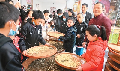 在福州教育學(xué)院附屬第二小學(xué),臺(tái)灣青少年近距離領(lǐng)略中華傳統(tǒng)文化的獨(dú)特魅力。書法藝術(shù)的雅致、篆刻技藝的精妙、掐絲琺瑯的華麗、金箔畫書簽的韻味……每一項(xiàng)體驗(yàn)都給臺(tái)灣青少年留下深刻印象。福州茉莉花茶傳統(tǒng)窨制工藝傳承人張子健現(xiàn)場(chǎng)展示了茉莉花茶制作技藝,不少臺(tái)灣青少年興趣盎然地跟著學(xué)習(xí)。兩岸青少年還攜手種下“連心樹(shù)”,期盼友誼之樹(shù)茁壯成長(zhǎng),未來(lái)見(jiàn)證彼此情誼的延續(xù)與發(fā)展。
