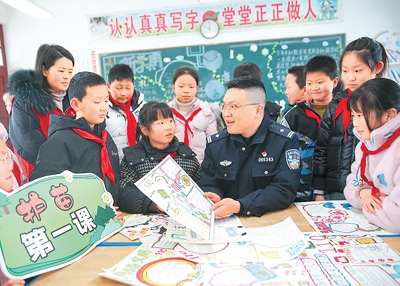 2月18日,在江蘇省如皋市下原鎮(zhèn)花園小學,派出所民警通過知識普及、主題手抄報等形式,引導小學生科學、文明、安全上網(wǎng)。