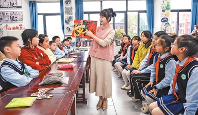 蘭楠帶領(lǐng)孩子們制作手工畫。