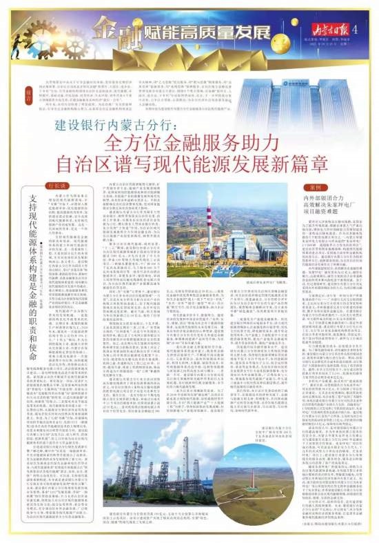 本期內(nèi)容為建設(shè)銀行內(nèi)蒙古分行金融服務(wù)自治區(qū)現(xiàn)代能源產(chǎn)業(yè)。