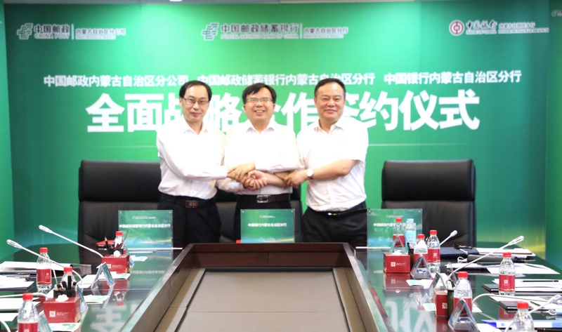 胡文勇行長表示,中國銀行內(nèi)蒙古分行植根草原沃土四十二載,始終把服務(wù)國家、自治區(qū)發(fā)展大局和賦能人民美好生活作為堅定使命,堅守金融本源,積極踐行國有大行責(zé)任擔(dān)當(dāng),以“八大金融”為著力點,為自治區(qū)經(jīng)濟社會高質(zhì)量發(fā)展提供了強有力的金融支持。中國郵政始終秉持“人民郵政為人民”的初心,以普遍服務(wù)為根基,在保證國家政令暢通、傳播黨的方針政策以及保障公民通信權(quán)、促進經(jīng)濟社會發(fā)展等方面發(fā)揮著重要作用。中國郵政儲蓄銀行承擔(dān)著“普之城鄉(xiāng),惠之于民”的社會責(zé)任,在提供普惠金融服務(wù)、發(fā)展綠色金融、助力鄉(xiāng)村振興等方面持續(xù)發(fā)力,已成為地方金融改革創(chuàng)新和服務(wù)實體經(jīng)濟發(fā)展的重要力量。希望未來三方持續(xù)拓展在金融領(lǐng)域和非金融領(lǐng)域的合作空間,共同為自治區(qū)廣大企事業(yè)單位和人民群眾提供更優(yōu)質(zhì)、更便捷、更全面的金融服務(wù)和郵政服務(wù)。