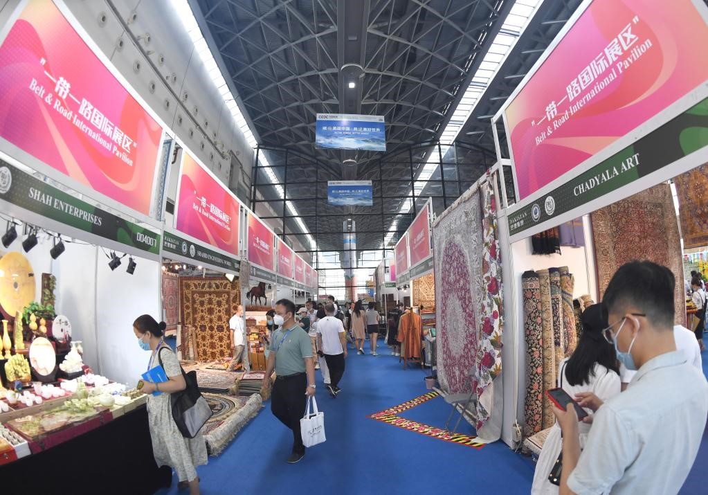 9月17日,參觀者在東博會(huì)“一帶一路”國(guó)際展區(qū)參觀。(新華社記者 周華 攝)