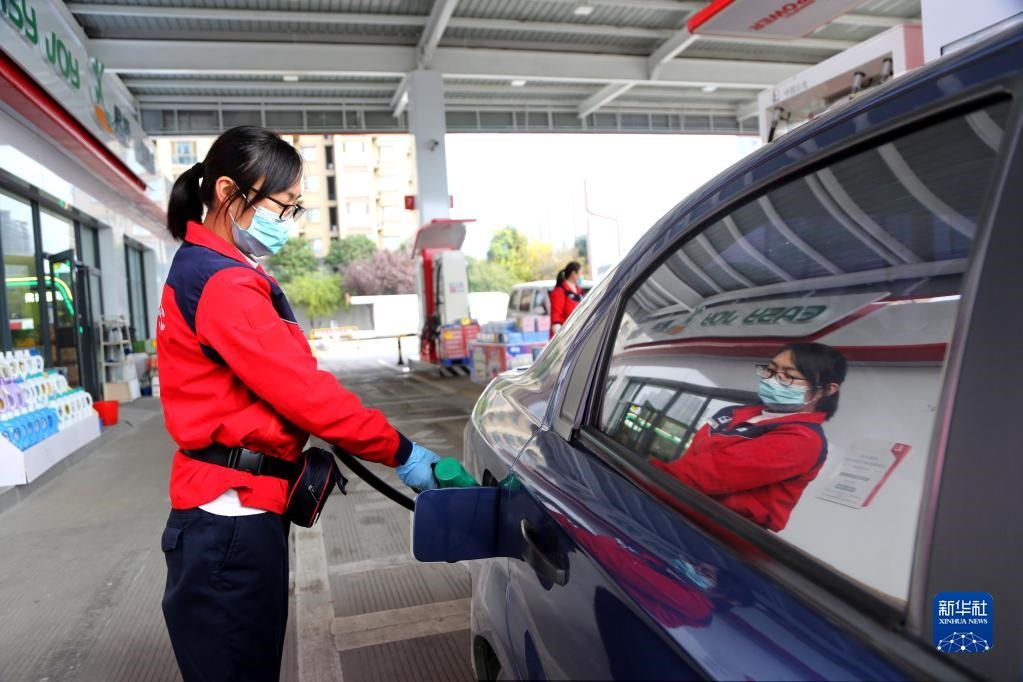 11月21日,在江蘇省連云港市連云區(qū)一加油站,工作人員給汽車(chē)加油。新華社發(fā)(王春 攝)