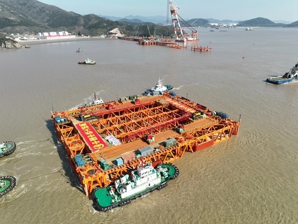 “自浮式鉆孔平臺定位后,我們將為平臺裝上8根將近百米的‘大長腿’,讓其能‘站’起來并屹立于海面之上。待平臺建好后,將把水上施工轉(zhuǎn)為陸地施工,既能縮短海上作業(yè)時(shí)間,也能確保施工安全質(zhì)量,為后續(xù)的6.3米世界最大直徑鉆孔樁施工提供有力保障。”中鐵大橋局甬舟鐵路西堠門公鐵兩用大橋總工程師王東輝說。