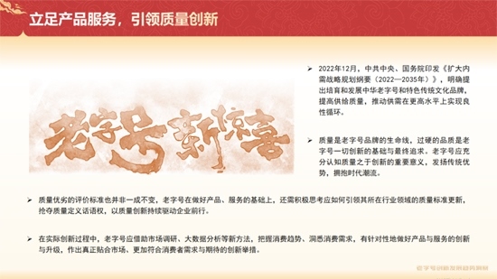 《報告》建議,在實際創(chuàng)新過程中,老字號應(yīng)借助市場調(diào)研、大數(shù)據(jù)分析等新方法,把握消費趨勢、洞悉消費需求,有針對性地做好產(chǎn)品與服務(wù)的創(chuàng)新與升級,作出真正貼合市場、更加符合消費者需求與期待的創(chuàng)新舉措。