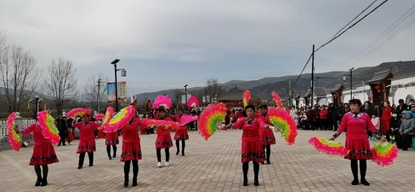 康樂縣魏家寨村文化廣場上,村民自發(fā)排練扇子舞。(受訪者供圖)